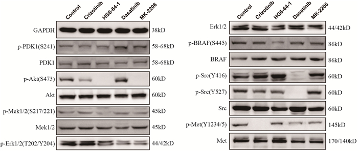 Methods Four molecular targeted drugs (HG6-64-1, Dasatinib, Crizotinib, and Sunitinib) were used to treat SK-Hep-1 cells, and the monophasic kinetic analysis curve and two-phase analysis curve were drawn. Western blot analysis was used to detect the effects of the above drugs on key signaling pathways in SK-Hep-1 cells. MTT assay was used to detect the effects of the above drugs and their combination on the proliferation of SK-Hep-1 cells.