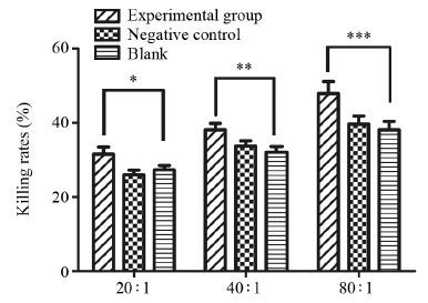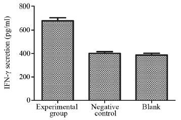 Methods Spleen T lymphocytes of mice were separated by magnetic bead, and we screened and validated an effective siRNA to silence TIPE2 gene of T lymphocytes. After 48h transfection, the secretion of IFN-γ was measured by enzyme-linked immuno-sorbent assay (ELISA). At the end, 72h after transfection, we compared the cytotoxicity activity changes against LA795 cells among transfected T lymphocytes(experimental group), negative control and simplex T lymphocytes(blank group) in vitro.