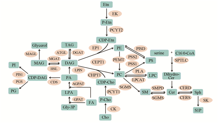 Lipids possess significant biological roles. There are complicated pathways of lipid metabolism and interconvertion of multiple lipid classes. The abnormality of lipid metabolism can cause various diseases, including diabetes, obesity, cancer and nervous degenerative diseases, etc.. The occurrence and development of tumors is a complex biological process associated with multiple mechanisms and factors. Energy metabolic deregulation has been concerned in the research of various cancers recently. With the development of lipidomics technology, increasing studies showed that the changes of lipid profiles and their metabolic deregulation played very important roles in the occurrence and development of cancers. In this review, we summarize the lipid metabolism pathways, the abnormality of lipid metabolism and their roles as well as the research progresses in the occurrence and development of cancer.