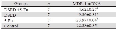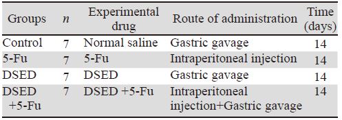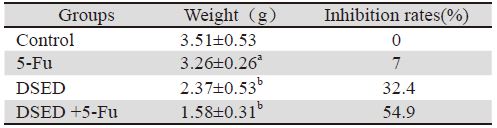 | Notes: a: P>0.05, compared with 5-Fu and DSED group; b: P<0.03, compared with control group |