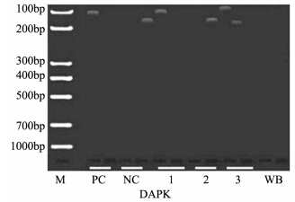 | 图 4 肝细胞癌组织中DAPK基因的MSP产物 Figure 4 MSP products of DAPK in HCC tissues |