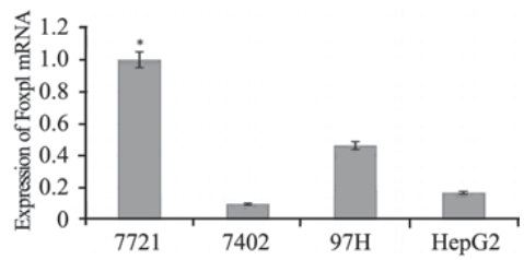 2 结果 2.1 选择高表达Foxp1 mRNA的肝癌细胞
