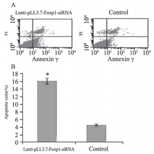 2.6 7721细胞感染lenti-pLL3.7-Foxp1-siRNA后凋亡增加
