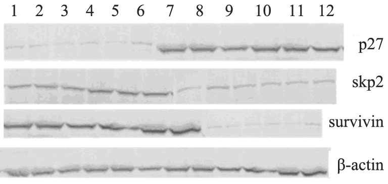 Figure 5 Expressions of p27, Skp2 and survivin protein