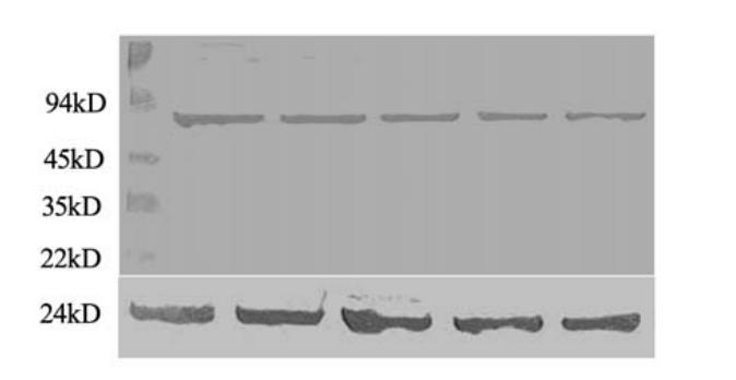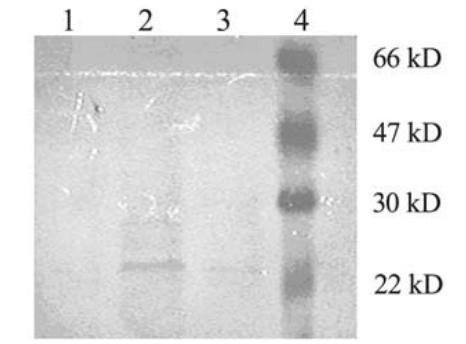在转染了X基因的10个HepG2X细胞克隆中,X 蛋白仅在1个克隆中有表达,蛋白表达于约21 kD处, 见图2。说明X基因已成功转染入HepG2细胞株。