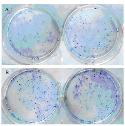 图4 平板克隆形成试验检验HepG2、HepG2X0、