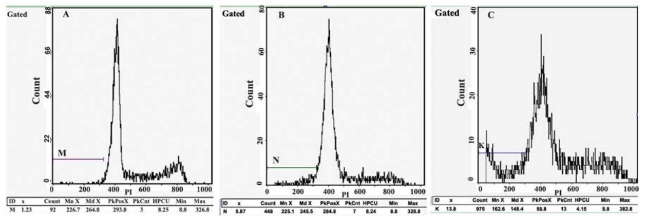 A:untreated HepG2 cell apoptosis;B:HepG2X0cell apoptosis;C:HepG2X cell apoptosis