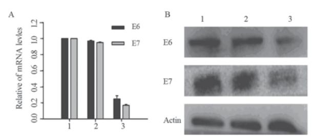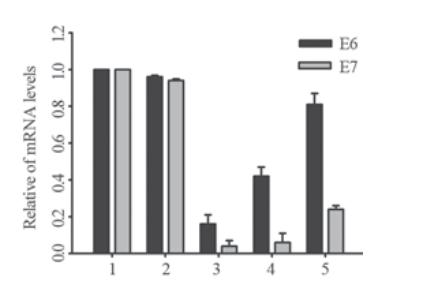 Figure 1 HPV16 E6/E7 mRNA expression after shRNA