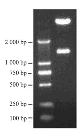 酶切鉴定结果显示在1 300 bp左右出现条带, 与STK11基因大小相同,见图 1。对pEGFP-STK11 插入片段进行测序,结果显示插入序列无突变, 与GenBank中STK11序列一致。