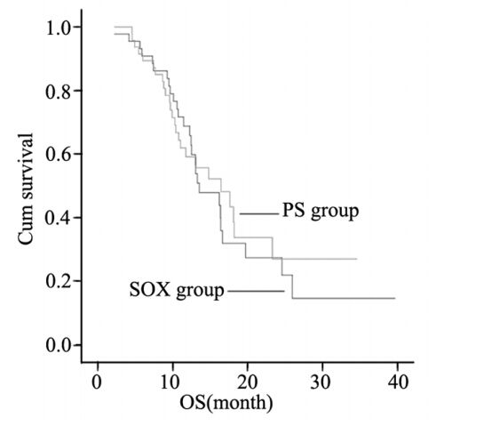 图2 SOX组和PS组患者OS曲线 Figure 2 OS curves of SOX group and PS group |