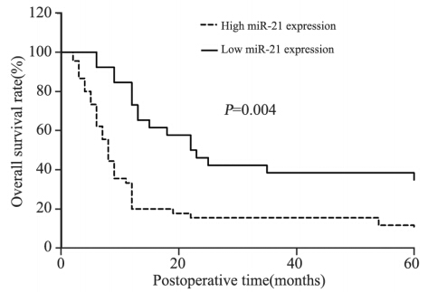 2.3 miR-21在食管癌患者预后中的意义