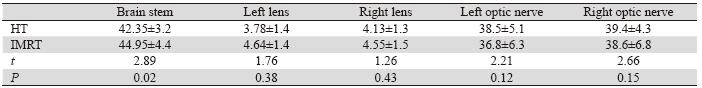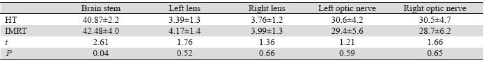 Table 2 Maximum doses of organs at risk in HT and IMRT plan in patients with multiple brain metastases( ±s,Gy) |