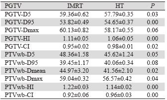 Table 3 Comparison of volume-dose in PGTV in HT and