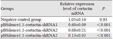 - 靶向cortactin基因的shRNA重组质粒的构建和筛选