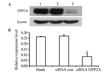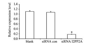 Real-time RT- PCR结果显示重组质粒 shRNA_I2PP2A对BGC-823细胞I2PP2A mRNA的表 达有显著的抑制效果,见图 3。