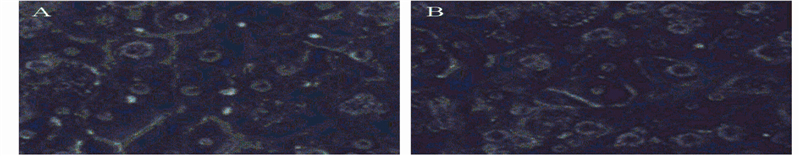 | A: Control; B: X-ray; C: Matrine; D: Matrine+X-ray 图 8 苦参碱和X线联合治疗对人肝细胞形态的影响 Figure 8 The effect of matrine combined with X-ray on cell morphology of human hepatocytes |