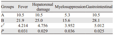 1.3 观察指标及随访方案化疗不良反应观察指标主要包含肝肾功能损伤、消化道症状(厌食、恶心以及呕吐等)以及骨髓抑制等;每3月行膀胱镜、B型超声、CT及胸片等检查,随访1年后改半年进行1次。