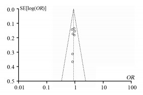 | 图 3 MTRR A66G多态性与儿童ALL风险的漏斗图 (GG vs.AA+AG) Figure 3 Funnel plot of the association between MTRR A66G polymorphism and pediatric ALL risk (GG vs. AA+AG) |