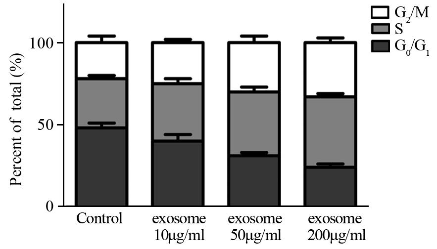 | 图 2 不同浓度exosome对4T1细胞周期的影响 Figure 2 Effect of exosome on cell cycle of 4T1 cells |