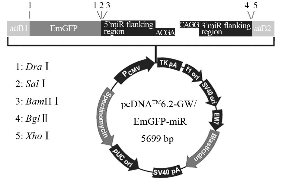 | 图 1 pcDNA6.2-GW/EmGFP-miR图谱 Fig. 1 pcDNA6.2-GW/EmGFP-miR |