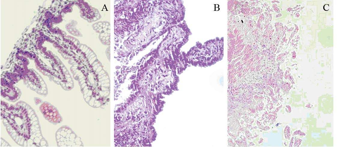 | 图 3 乳鼠大肠组织HE染色结果 Fig. 3 HE staining results of neonatal rat's colon tissues |