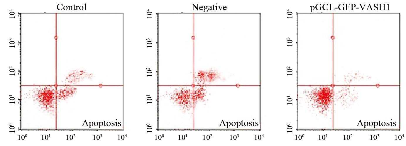 | 图 4 F C M 法检测转染9 6 h 时 VASH1 shRNA对U-87MG细胞凋 亡的影响 Figure 4 Effect of VASH1 shRNA on apoptosis of U-87MG cells detected by FCM at 96h |