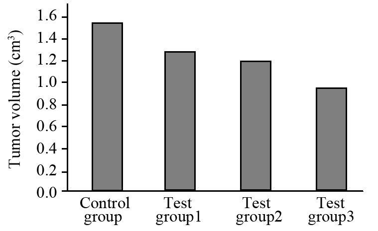 | 图 1 不同浓度贝伐单抗对移植瘤体积大小的影响 Fig. 1 Effects of different concentrations of bevacizumab on tumor volume of xenografts |
