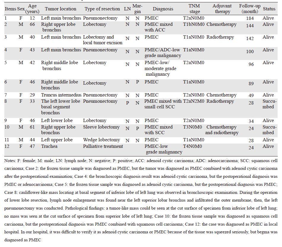 - Primary Pulmonary Mucoepidermoid Carcinoma: Twelve Cases Report and Literature Review