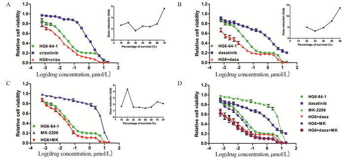Methods Four molecular targeted drugs (HG6-64-1, Dasatinib, Crizotinib, and Sunitinib) were used to treat SK-Hep-1 cells, and the monophasic kinetic analysis curve and two-phase analysis curve were drawn. Western blot analysis was used to detect the effects of the above drugs on key signaling pathways in SK-Hep-1 cells. MTT assay was used to detect the effects of the above drugs and their combination on the proliferation of SK-Hep-1 cells.
