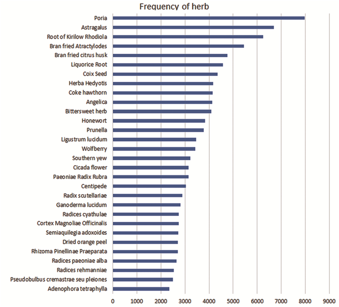 Results In the 11 293 pieces of traditional Chinese medicine used in 3 234 patients with lung cancer, the core prescription of 16 core drugs were Astragalus, Coix seed, Poria, Coke hawthorn, Ligustrum lucidum, Wolfberry, Bran fried atractylodes, Mushroom stem, Bran fried citrus husk, Bittersweet herb, Centipede, Rhodiola, Semiaquilegia adoxoides, Seaweed, Prunella and Pseudobulbus cremastrae seu pleiones.