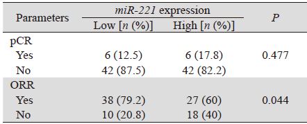 - Plasma miR-221 Expression could Predict Chemosensitivity to Neoadjuvant Chemotherapy in Breast Cancer Patients