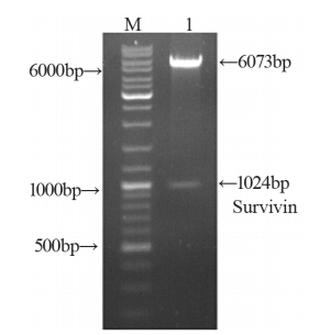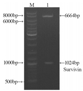 S-WPRE:pGL3-survivin-WPRE; Lane1: S-WPRE vector digested by