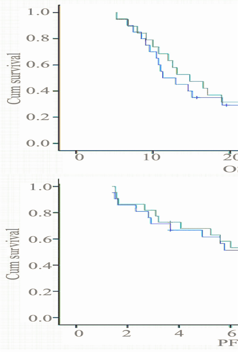 按RECIST实体瘤疗效评价标 准,每2周期进行一次影像学评估,分为完全缓解 (CR)、部分缓解(PR)、稳定(SD)和进展 (PD),客观缓解率(RR)为CR+PR,疾病控制率 (DCR)为RR+SD。 1.4.2 远期疗效