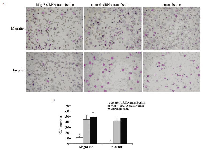 - siRNA干扰Mig-7基因对人胃癌MKN45细胞侵袭和迁移的影响