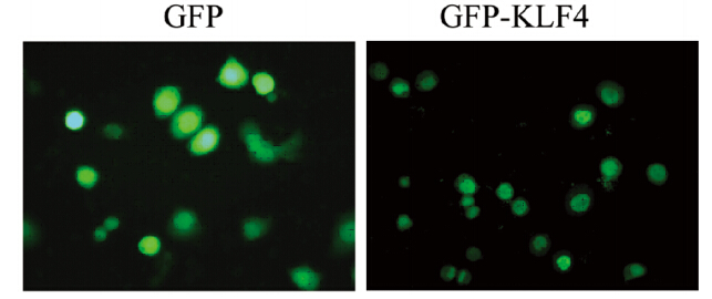 | 图 3 GFP和GFP-KLF4在乳腺癌SK-BR-3细胞表达 Figure 3 Expression of GFP and GFP-KLF4 in breast cancer cells SK-BR-3 |