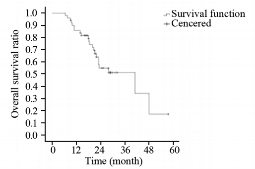 | 图 1 50例HGG患者总生存率曲线图 Figure 1 Overall survival curves of 50 HGG patients |